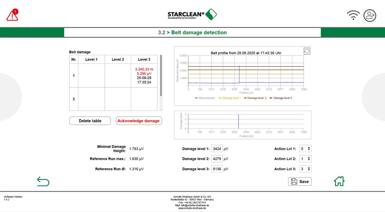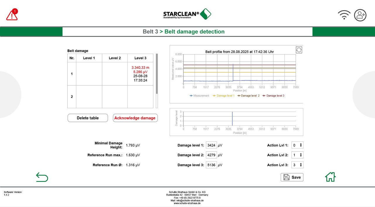 En cours d’exploitation, le système a détecté un événement de dommage de bande de niveau 3, indiquant un dommage critique nécessitant des mesures immédiates. L’option de désactivation automatique intégrée a permis d’éviter que le dommage ne s’aggrave davantage.